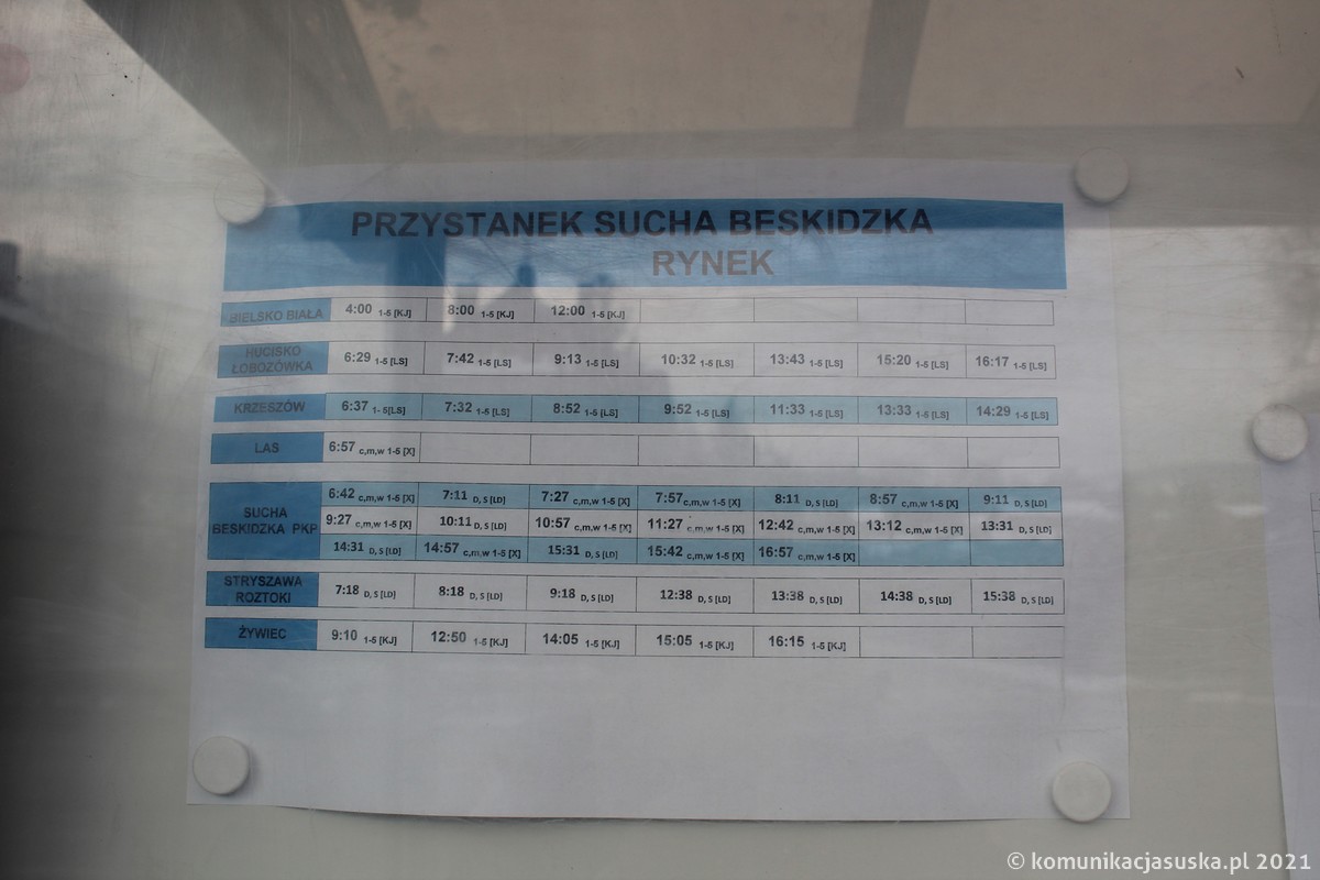 Lokalne samorządy od kilku lat próbują pomóc pasażerom poprzez umieszczanie w gablotach przystankowych zbiorczych rozkładów jazdy. Podczas pandemii koronawirusa trudno było zadbać o aktualne godziny odjazdów busów, gdyż te zmieniały się wręcz z dnia na dzień. Teraz sytuacja się nieco unormowała, co skłoniło pracowników Urzędu Miasta Sucha Beskidzka do zaktualizowania rozkładów umieszczonych w gablotach.