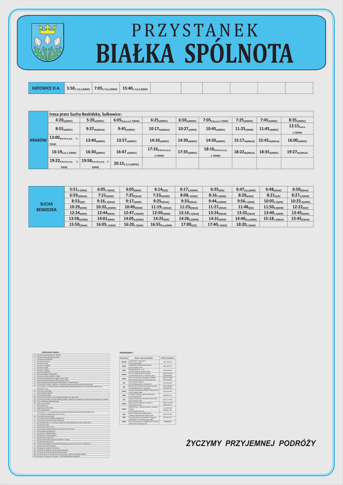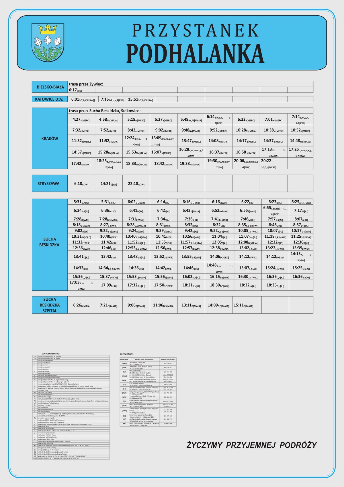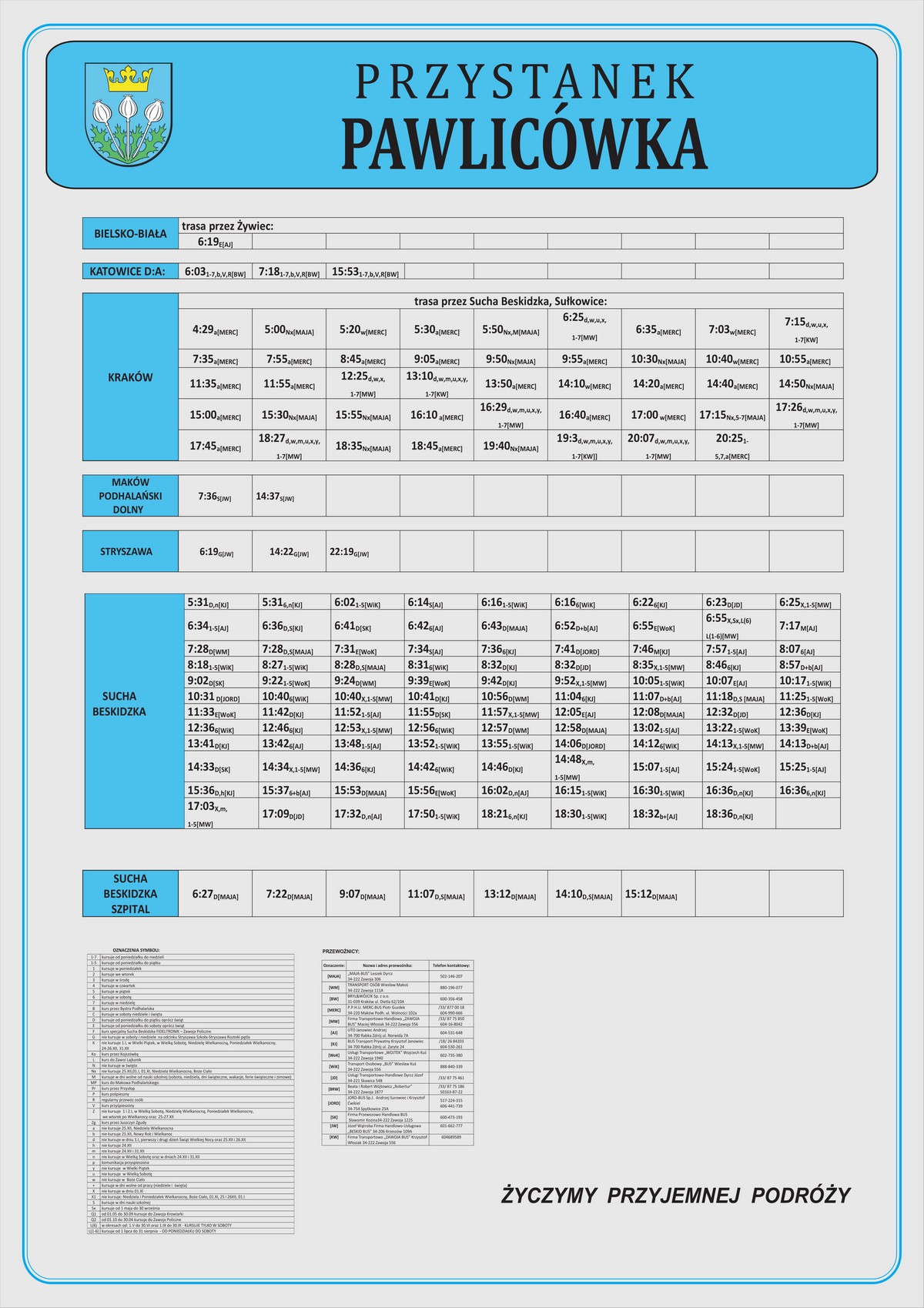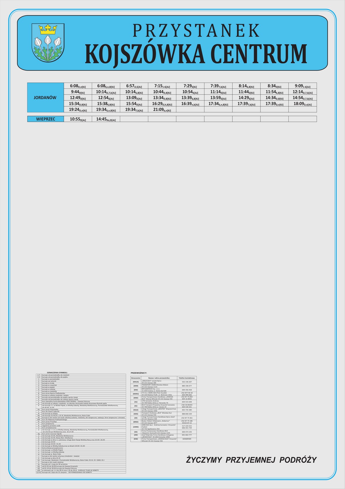 Nowe plansze z rozkładami pojawiły się łącznie na 21 przystankach: dziesięciu w Makowie Podhalańskim, sześciu w Białce, trzech w Juszczynie oraz dwóch w Kojszówce. Grafiki z rozkładami, tak jak poprzednio, zostały opublikowane na naszej stronie w zakładce „rozkłady jazdy > tabliczki przystankowe„.