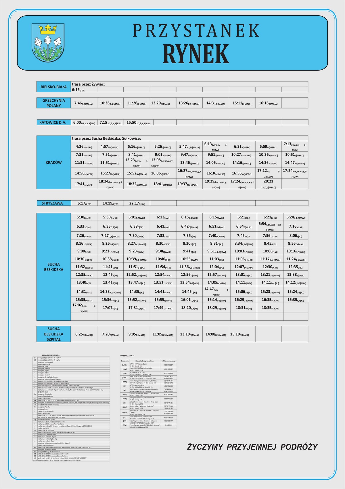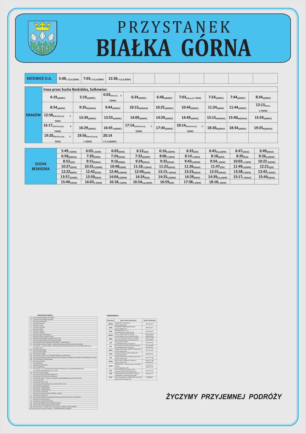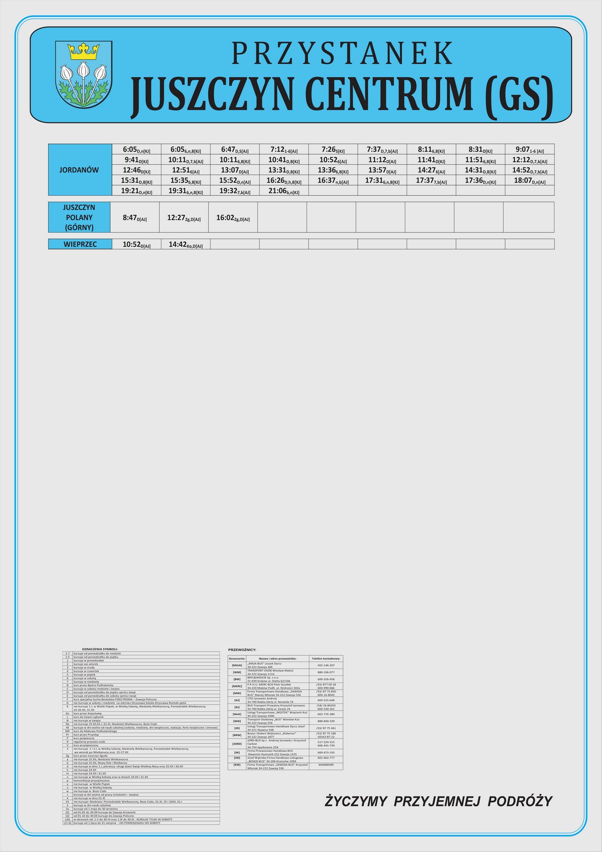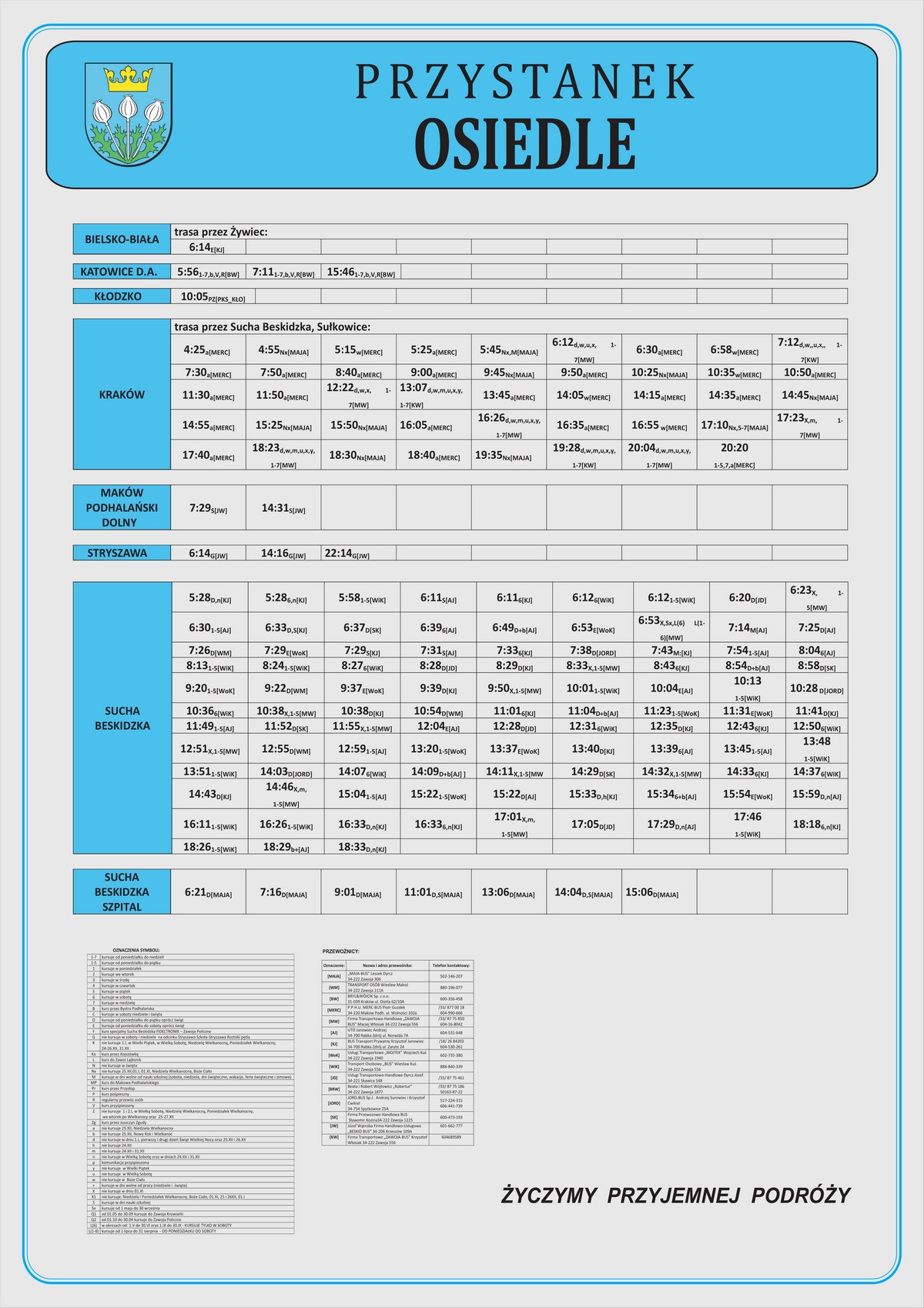 Nowe plansze z rozkładami pojawiły się łącznie na 21 przystankach: dziesięciu w Makowie Podhalańskim, sześciu w Białce, trzech w Juszczynie oraz dwóch w Kojszówce. Grafiki z rozkładami, tak jak poprzednio, zostały opublikowane na naszej stronie w zakładce „rozkłady jazdy > tabliczki przystankowe„.