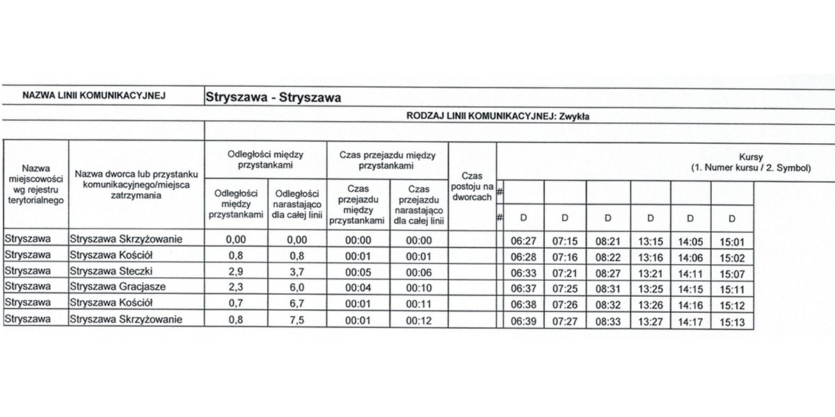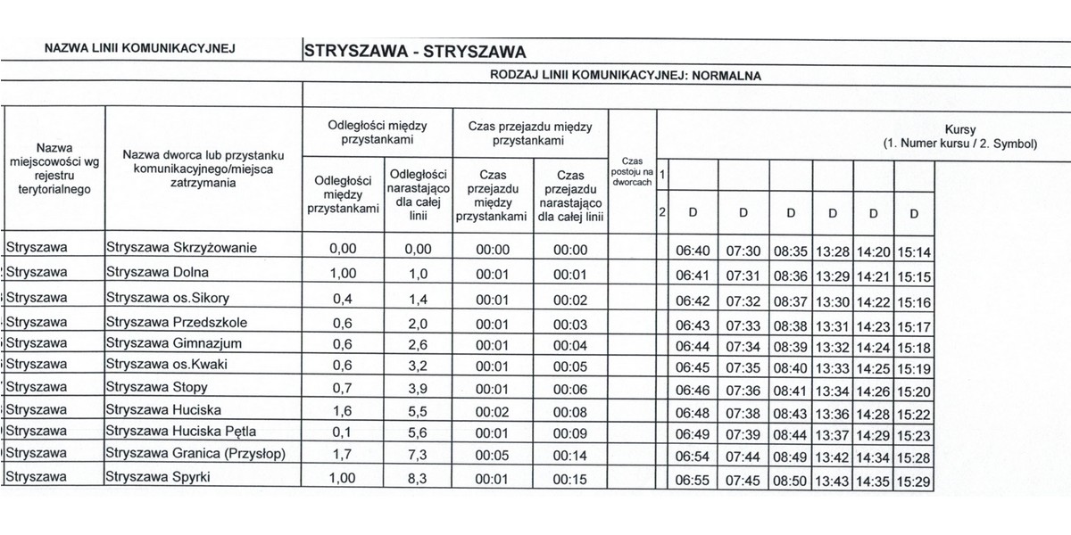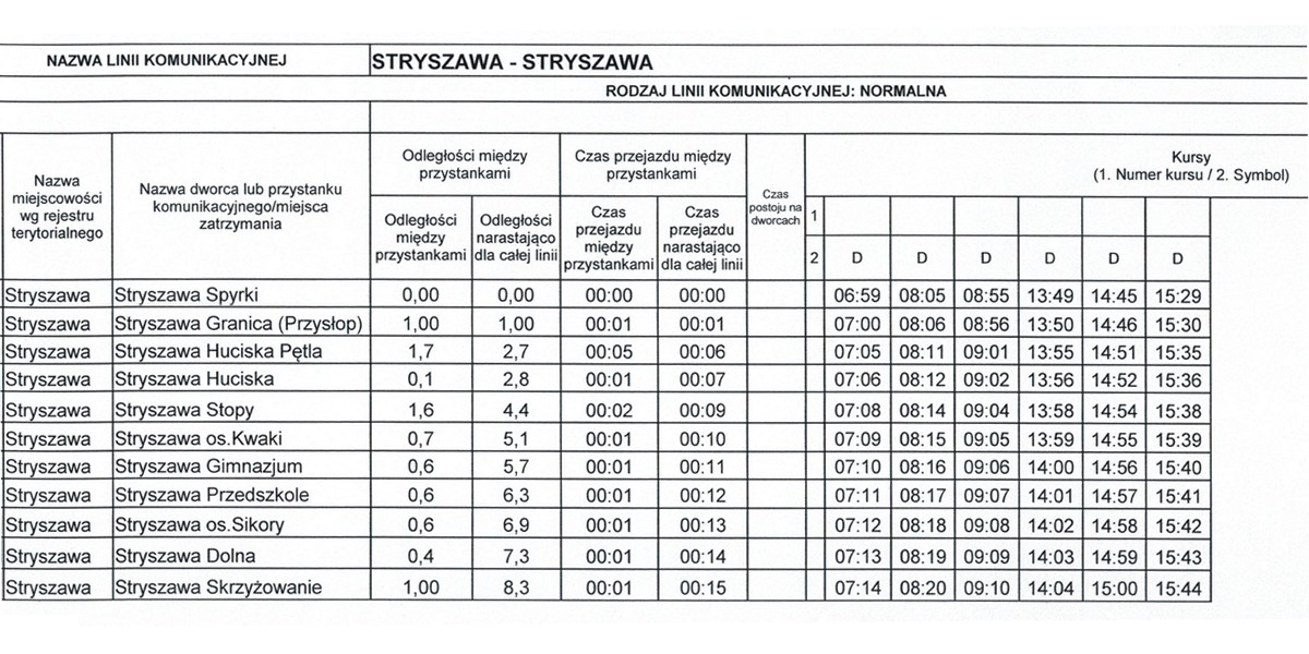 Wszystkie kursy będą realizowane w dni robocze, od poniedziałku do piątku. Dziennie zostanie wykonanych łącznie 50 kursów na wszystkich liniach. Poniżej prezentujemy szczegółowe rozkłady jazdy dostępne na stronie internetowej Urzędu Gminy w Stryszawie.