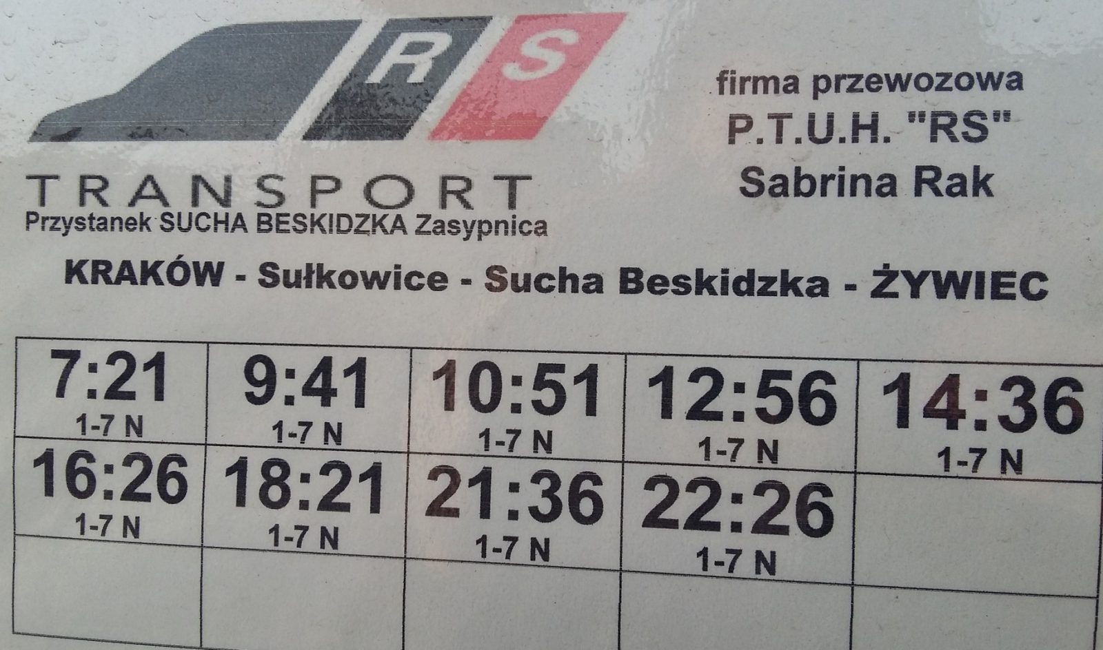 6 marca 2017 rok (poniedziałek) firma RS Transport z Kukowa uruchomi nowe połączenie na trasie Żywiec – Sucha Beskidzka – Kraków. Busy rozpoczną kurs na Dworcu Autobusowym w Żywcu, a zakończą na Małopolskim Dworcu Autobusowym w Krakowie. Trasa przebiegać będzie przez Łękawicę, Gilowice, Ślemień, Kocoń, Las, Kuków, Stryszawę, Suchą Beskidzką, Zembrzyce, Budzów, Palczę, Harbutowice, Sułkowice, Biertowice, Izdebnik, Krzywaczkę, Głogoczów, Mogilany, Gaj i Libertów.