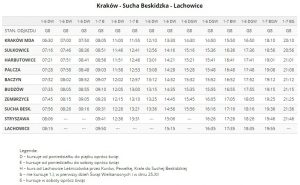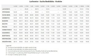 Od 6 marca 2017 roku firma RS Transport realizuje także połączenie na trasie Żywiec – Kraków przez Suchą Beskidzką. Daje to w sumie 23 pary kursów dziennie na odcinku Sucha Beskidzka – Kraków!