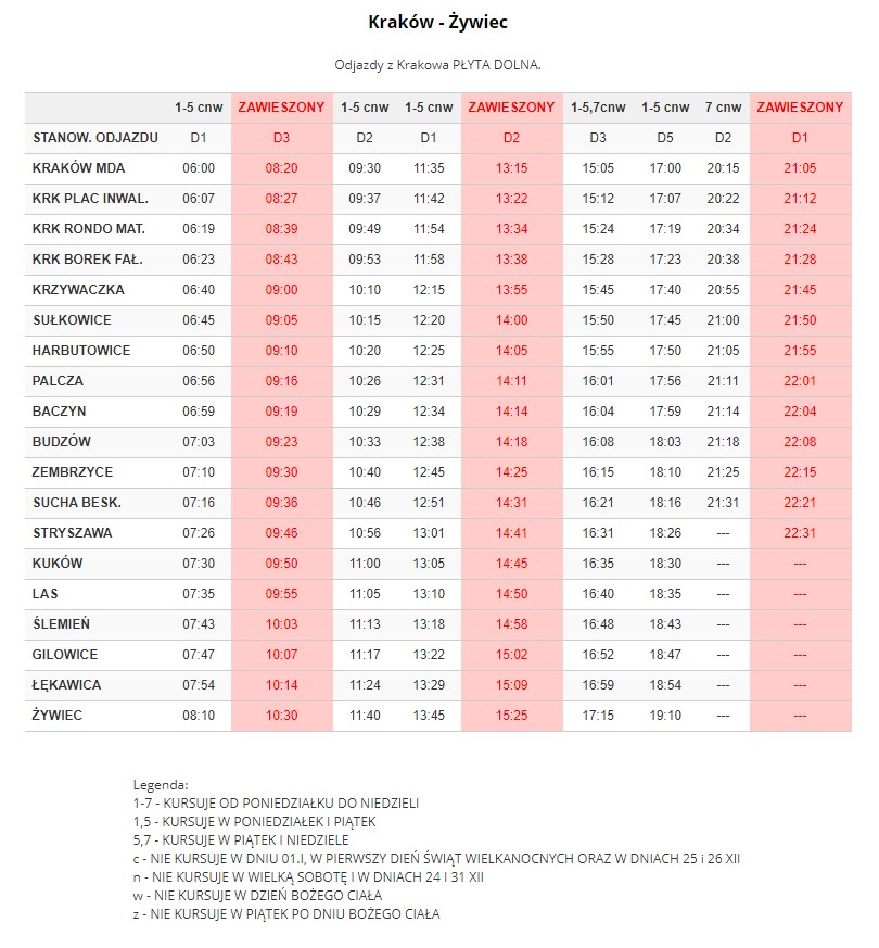 Zmiana przystanków nie powoduje zmiany rozkładu jazdy. Aktualne godziny odjazdów prezentujemy poniżej: