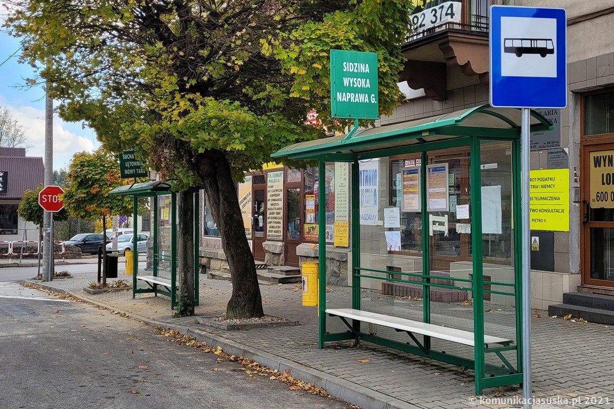 Jak informuje firma Mastercar obsługująca linię Jordanów – Sidzina: „osoby z przystanku GS,PKP oraz Knapikowej prosimy o podejście na przystanek pod Urzędem Gminy, natomiast osoby wsiadające na przystanku Mąkacz, prosimy o podejście na przystanek przy drodze głównej DK28.”.
