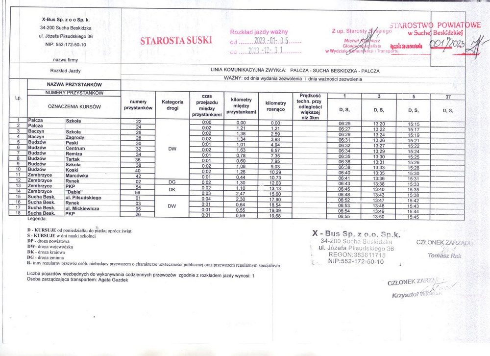 Poniżej prezentujemy szczegółowy rozkład jazdy na linii Palcza – Sucha Beskidzka firmy X-Bus.