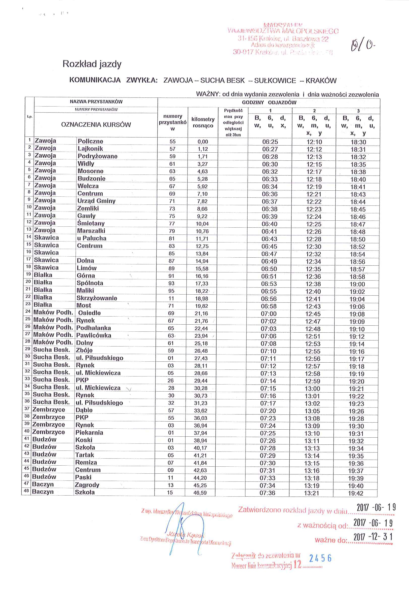 Odjazdy z Zawoi Policzne do Krakowa: 6:25, 12:10, 18:30