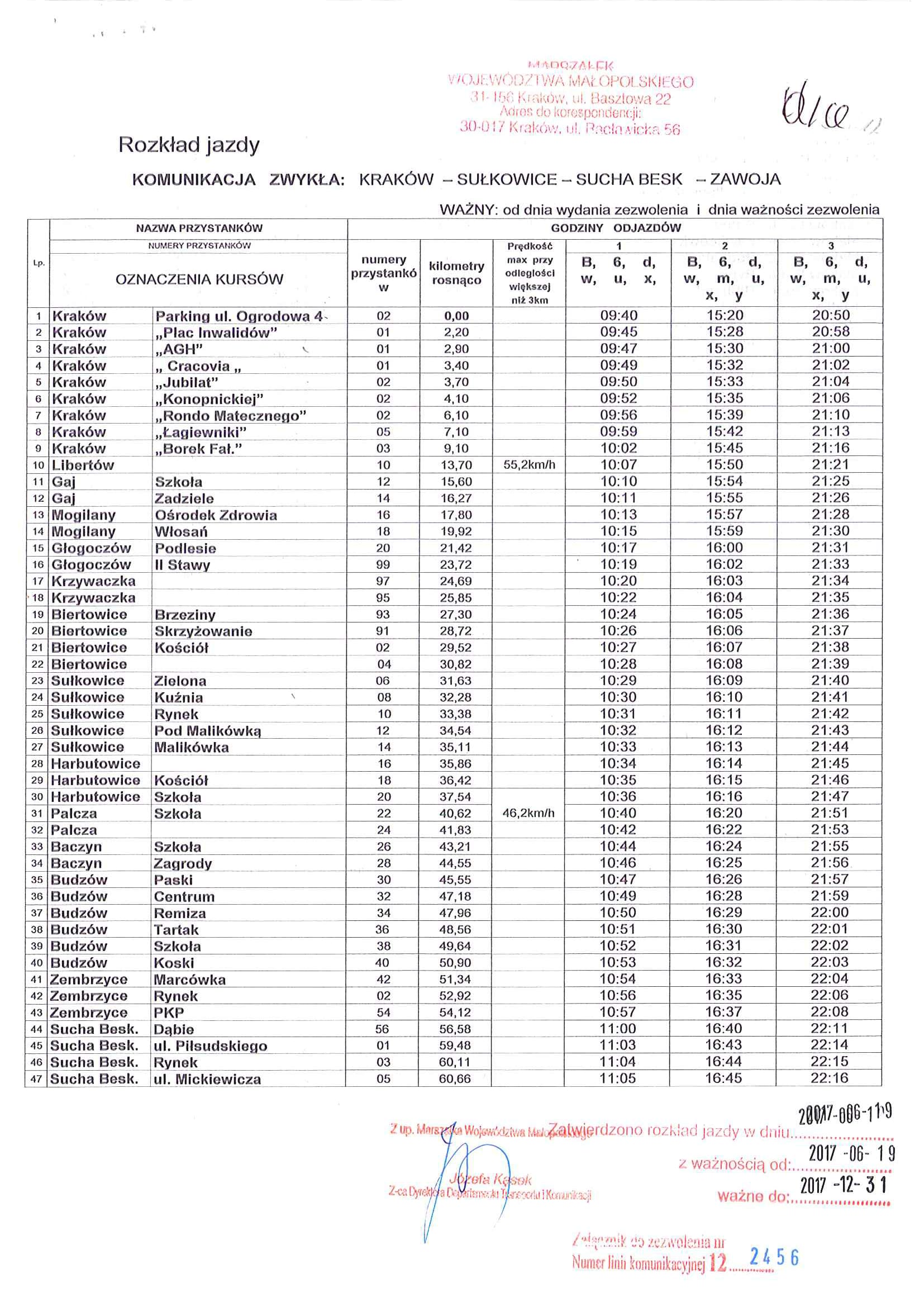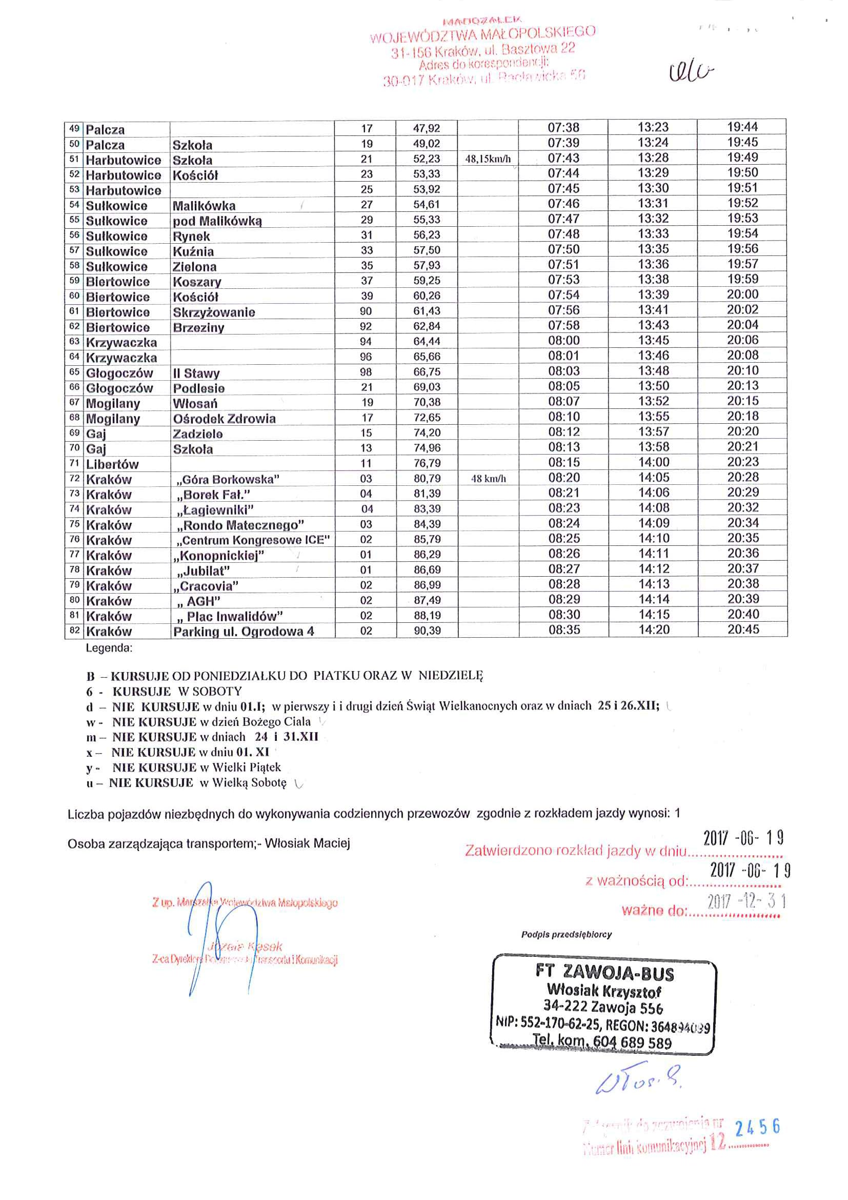 Nowe kursy rozpoczną swój bieg w Zawoi Policzne, a zakończą na parkingu przy ul. Ogrodowej 4 w Krakowie, a nie tak jak pozostałe na Małopolskim Dworcu Autobusowym.